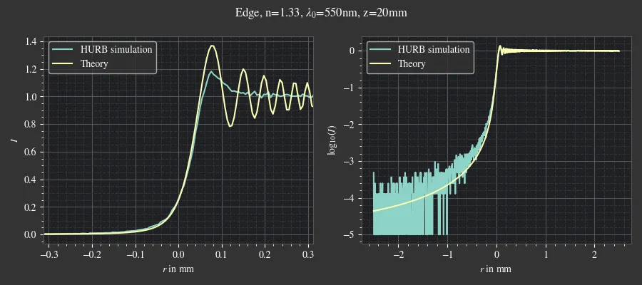 Fig. 5.17 Comparison of HURB and the theoretical curve for the profile of edge diffraction.¶